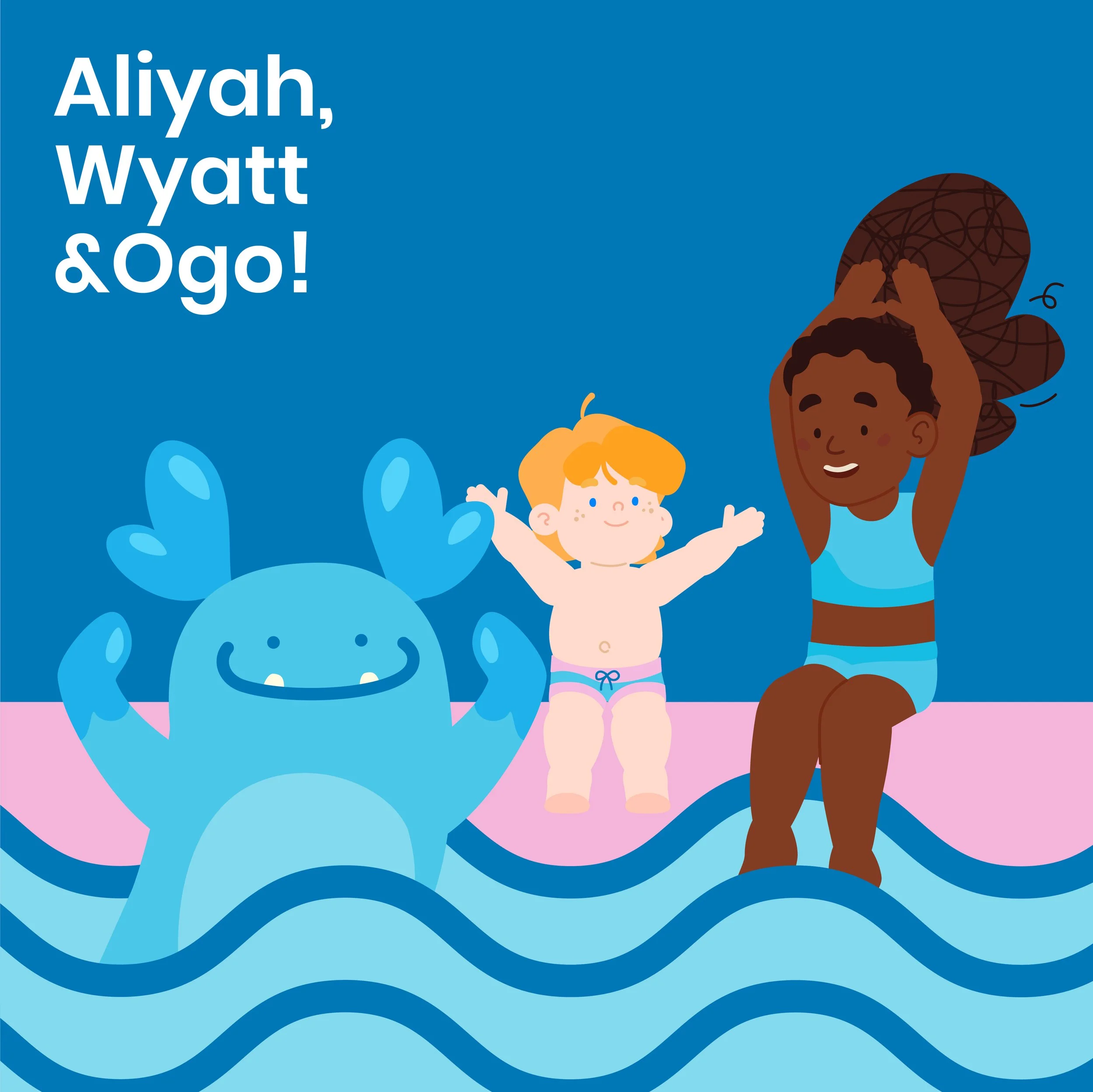 Wyatt is the youngest character in the suite and he’s a bit shy. He’s named after the founder’s son and represents white kids. He can show how first time swimmers might be timid about the water but, with a bit of encouragement, their enthusiasm can grow!